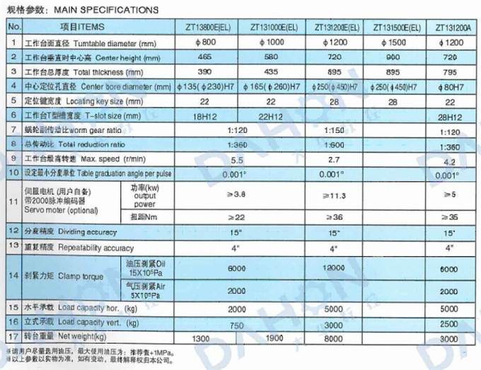 ZT 13E( EL) NC rotary table with through hole in the spindle center is suitable for either horizontal or vertical position,it is a perfect accessory for NC miller and machine center.Used in combination with the control of NC