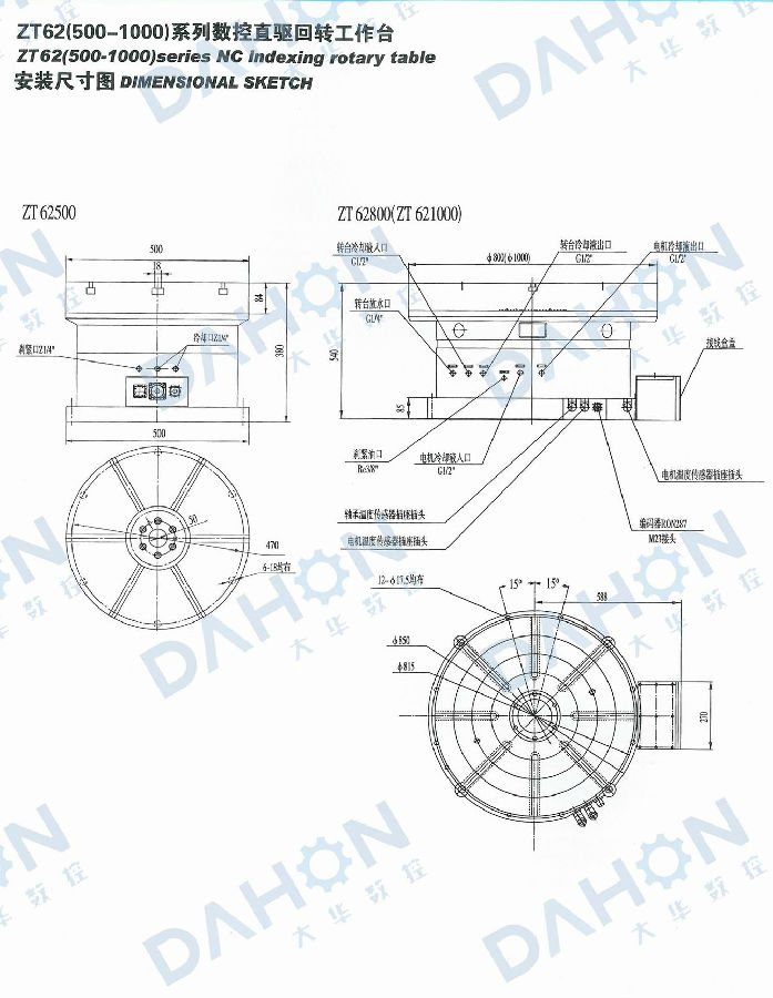 ZT62數控直驅回轉工作臺采用大扭矩力矩電機直接驅動,編碼器為反饋信號,可實現高精度的旋轉定位,是數控鏜銑床和加工中心的理想配套附件。工作時,在主機相關控制系統控制下,能夠完成與主機相協調的各種必需的分度回轉運動,實現等分、不等分的連續孔槽、曲面的加工,且達到較高的精度。