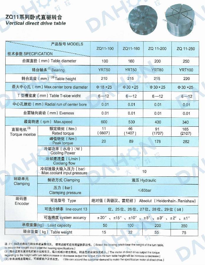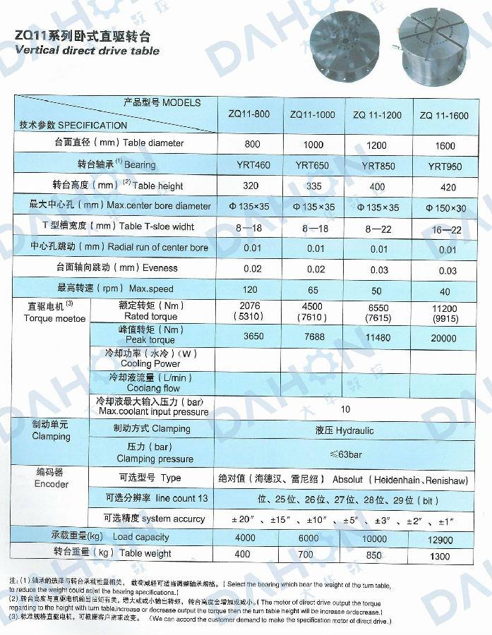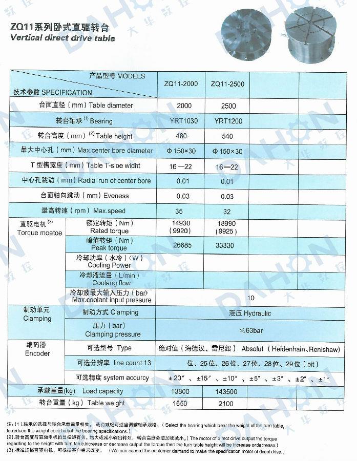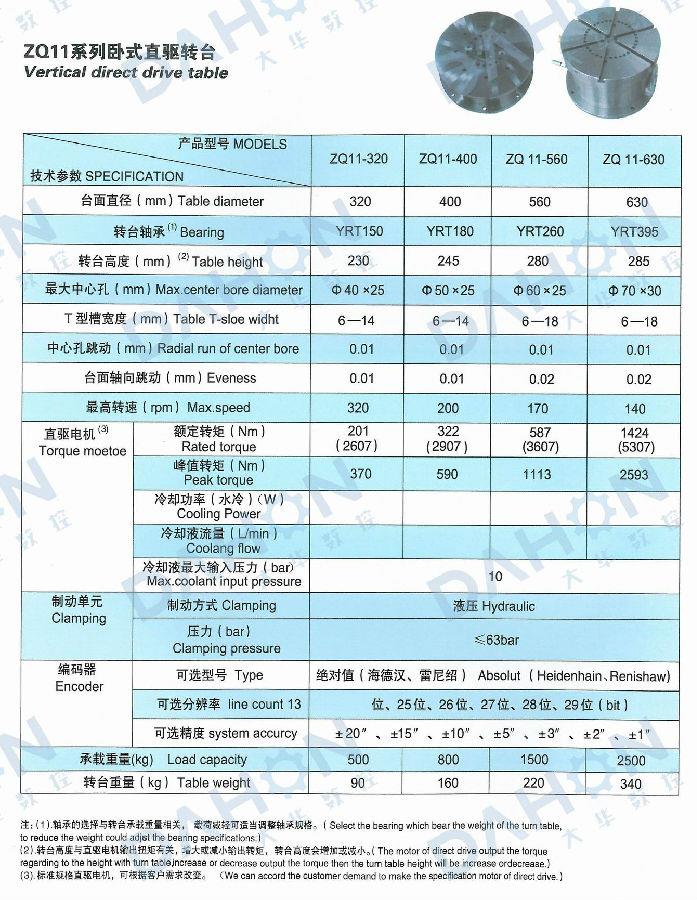ZQ系列數(shù)控直驅(qū)回轉(zhuǎn)工作臺采用大扭矩力矩電機直接驅(qū)動,編碼器為反饋信號,可實現(xiàn)高精度的旋轉(zhuǎn)定位,是數(shù)控鏜銑床和加工中心的理想配套附件。工作時,在主機相關(guān)控制系統(tǒng)控制下,能夠完成與主機相協(xié)調(diào)的各種必需的分度回轉(zhuǎn)運動,實現(xiàn)等分、不等分的連續(xù)孔、槽、曲面的加工,且達到較高的精度。煙臺大華數(shù)控機床附件有限公司是數(shù)控機床附件設備的知名配套企業(yè),可生產(chǎn)多種型號臥式直驅(qū)轉(zhuǎn)臺產(chǎn)品,技術(shù)精湛,可定制研發(fā)。